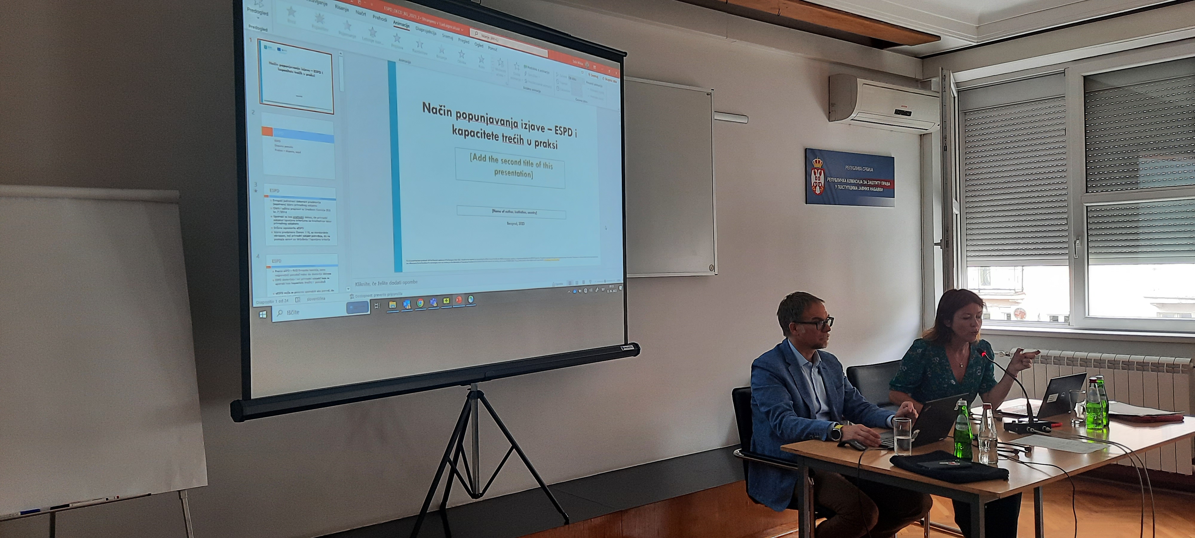 The workshop was devoted to the following topics: the application of the European Single Procurement Document (ESPD) and the relationship with the normative framework and practice in the Republic of Serbia, “reliance on the capacities of third parties”, as well as the presentation of the analysis of the effects of the implementation of “green procurement” in the Republic of Slovenia.